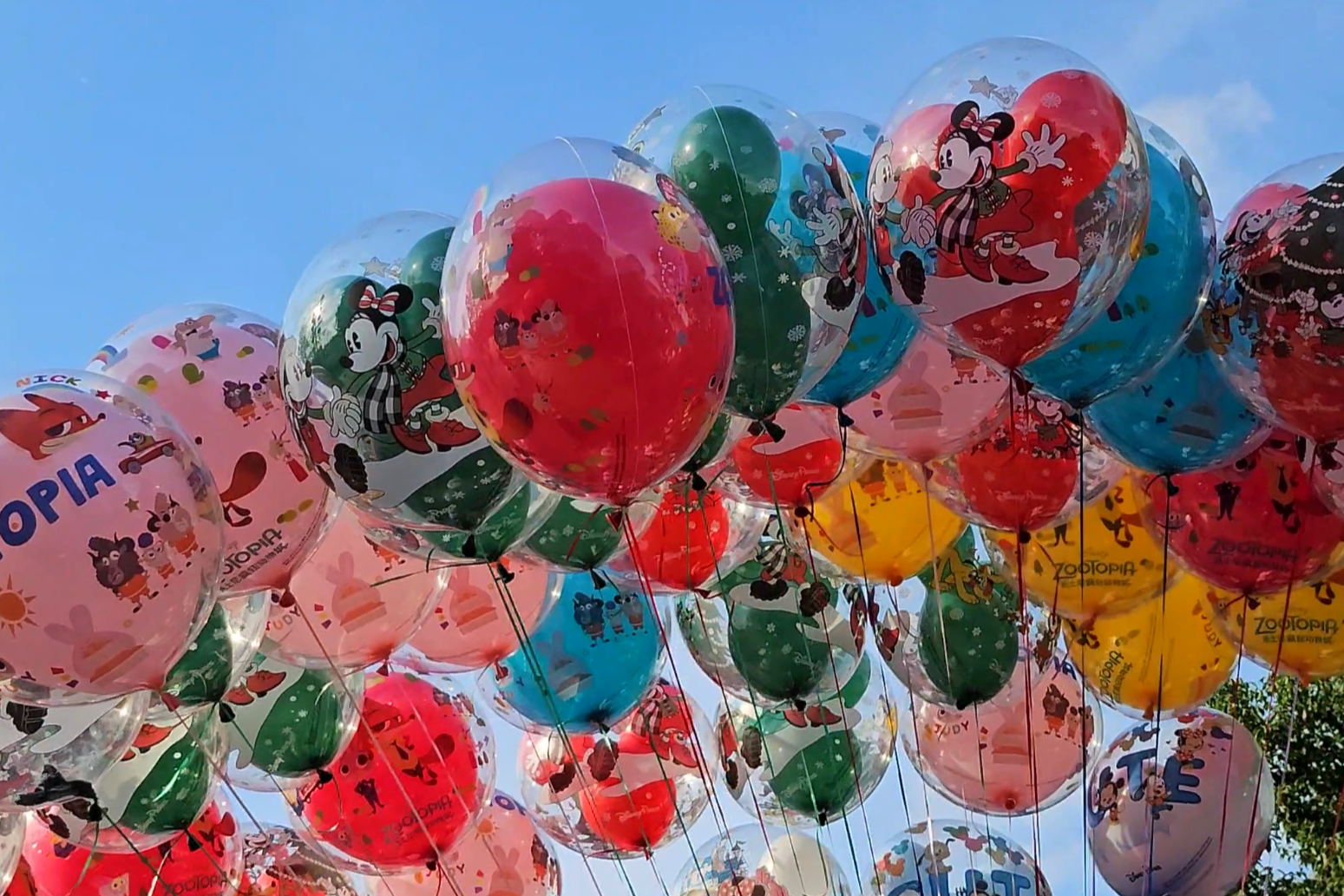 사진에서 보듯이, 크리스마스 한정 디즈니 캐릭터들이 그려진 풍선도 판매되고 있어요.